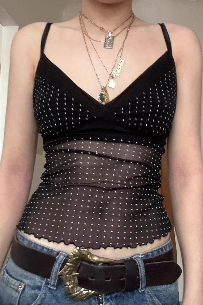 Sheer Polka Dot V-Neck Halter Cami Crop Top