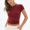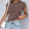 Summer 2025 Short Sleeve Simple Stretch Slim Pullovers Women's Crop Top T-shirt