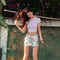 Nude Stretch Texture Waist Base Modal Graphic Women's T-shirt