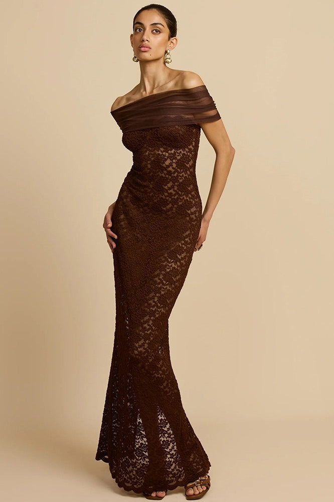 Lace See-Through Off-Shoulder Fishtail Party Dress