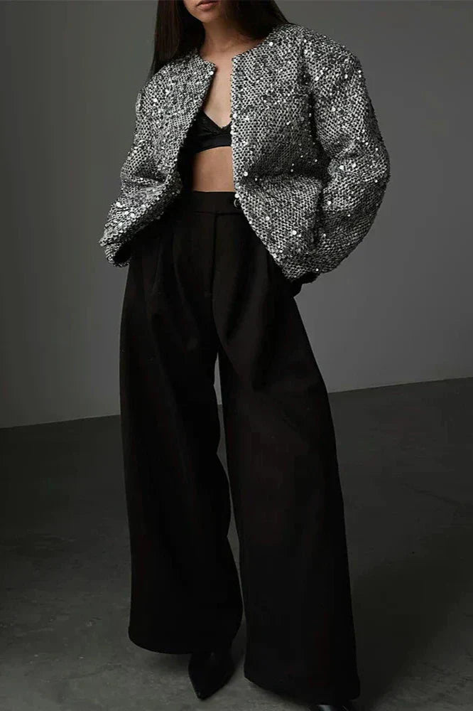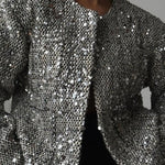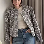 Introducing our New Spring Tweed Sequin Jacket, the perfect blend of elegance and sparkle for the season. Crafted from luxurious tweed with sparkling sequin accents, this jacket offers a refined touch to any outfit.