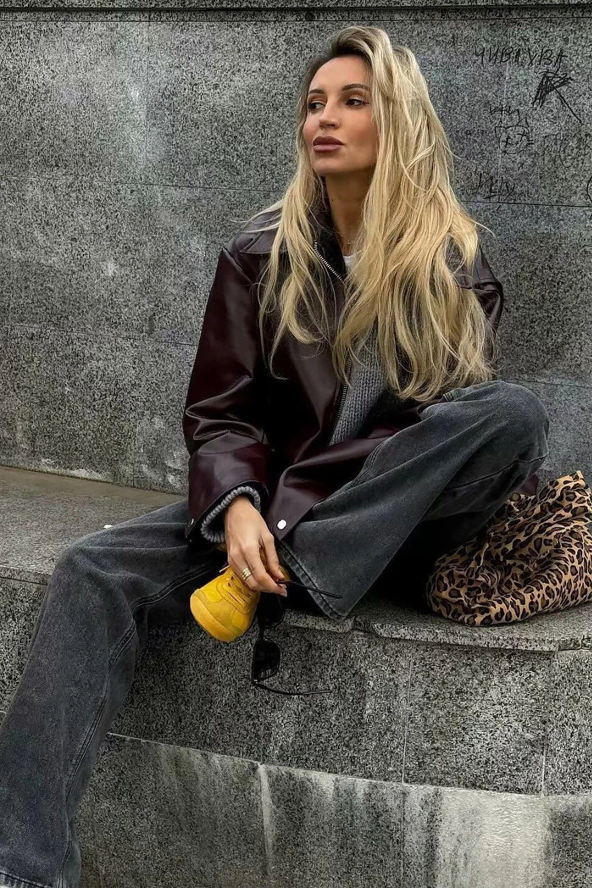 Designed for versatility, this jacket combines chic style with a hint of edgy appeal. Whether you’re pairing it with a cozy sweater or a fitted dress, you’ll exude confidence and flair. Don’t miss out on this must-have piece that will keep you stylish all season long. Order yours today!