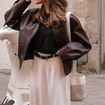 Embrace street style with our burgundy jacket, crafted from high-quality spandex for a sleek, comfortable fit. The medium thickness provides just the right amount of warmth, making it perfect for layering in cooler weather. The lapel collar and long sleeves offer a classic touch, while the front zipper adds a modern edge.