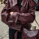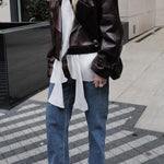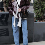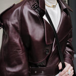 This cropped moto leather jacket is the ultimate blend of edgy style and classic appeal. Designed with a sleek silhouette, it features all the iconic details—like sturdy zippers and a structured fit—that make a biker jacket timeless. Perfect for adding a bold, stylish layer to any outfit, this jacket is a versatile piece that complements both casual and dressy looks, giving you an effortlessly cool edge.