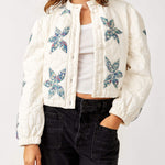 The BoiiLife 'Long Sleeve Button Embroidered Cropped Jacket' features a sleek tailored design inspired by the classic biker jacket aesthetic. It includes stylish buttons and a cropped length. and the embroidered flowers add a stylish touch. making it perfect for pairing with both casual and formal outfits. The elegant silhouette of this jacket adds a touch of sophistication. making it a versatile piece for any wardrobe.