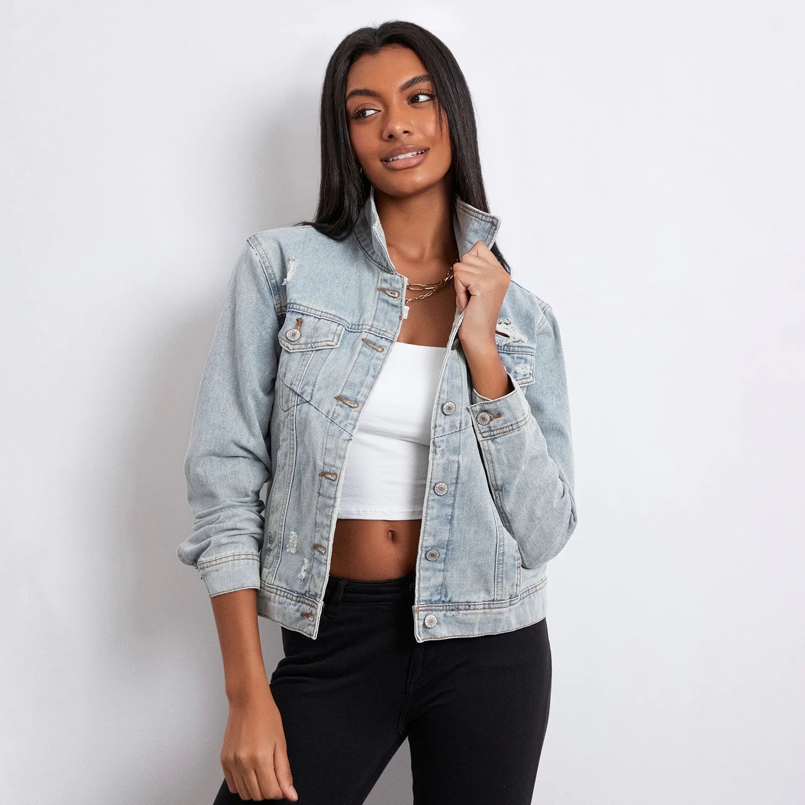 Chic Basic Boyfriend Denim Jacket Jacket